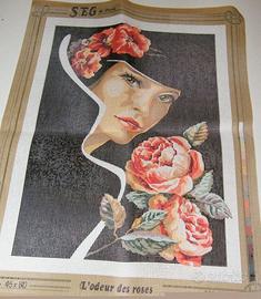 Canovacci mezzopunto di qualità nuovi cm. 45 x 60 My fair lady (Donna con le dalie) L’odeur des roses (Donna con le rose)