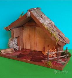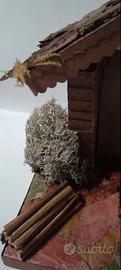 Capanna per presepe, tutta in materiali naturali, pavimento in decupage di foglie, base cm. 24x10, altezza cm. 17, fatta da me. Adatta a statuine di 6 cm.