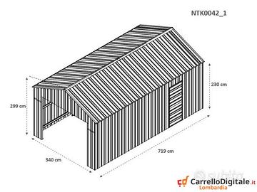 Il box prefabbricato 360 x 762 cm viene venduto nuovo con garanzia e con fattura o ricevuta fiscale. Viene consegnato all'indirizzo che ci verrà comunicato in kit di montaggio comprensivo di tutta la ferramenta necessaria a montarlo. Box garage casetta prefabbricato in lamiera di Acciaio Zincata grecata con Saracinesca NUOVO, perfetto per il giardino usato come capanno per ricovero rimessa attrezzi o come riparo per auto moto, baracca da cantiere o box attrezzi SPEDIZIONE IN TUTTA ITALIA INCLUSA NEL PREZZO -Dimensioni esterne (incluso tetto): 3.60 m (Larghezza) x 7.62 m (Lunghezza) x 3.15 m (Altezza) -Dimensioni esterne (solo perimetro) 3.45 m (Larghezza) x 7.62 m (Lunghezza) -Altezza della parete: 2.37 m -Altezza Colmo: 3.15 m -Metri Quadri: 27,43 mq -Rinforzo rigido: 80 mm x 40 mm, spessore 1,5 mm in acciaio zincato tubi telaio scatolato -Dimensioni porta principale anteriore: 2.55 m (Larghezza) x 2.20 m (Altezza) (Saracinesca) -Dimensioni della porta laterale: 0.72 m (Larghezza) x 1.93 m (Altezza) (1 porta) -Peso: 562 kg circa Telefono/Whatsapp: A soli 3169 euro IVA, spedizione ed assicurazione sulla spedizione inclusi nel prezzo. Possibilità di acquisto con pagamento alla consegna (SOLO CONTANTI no assegni). Attenzione, il metallo utilizzato non è ferro o alluminio ma acciaio zincato. Il box in acciaio in questione non è coibentato (pannelli sandwich) ma può essere modificato facilmente e con una spesa minima. Box completamente in acciaio, con lamiera verniciata e trattata per resistere alle intemperie. Nessun bisogno di manutenzione. Contattaci oggi stesso per maggiori informazioni, materiale a supporto o per conoscere tanti altri modelli disponibili. Chiama ora il o scrivici su whatsapp!