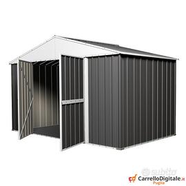 Box casetta 3.60 x 1.75 capanno in lamiera zincata da giardino o cantiere facile da montare grazie al manuale e il kit di montaggio comprensivo di tutta la ferramenta. Casetta per attrezzi, prefabbricato in lamiera di Acciaio Zincata grecata perfetto per il giardino usato come capanno per ricovero rimessa attrezzi da giardinaggio o come riparo per bici e frese. SPEDIZIONE IN TUTTA ITALIA INCLUSA NEL PREZZO * Dimensioni esterne (incluso tetto): 3.60 m (Larghezza) x 1.75 m (Lunghezza) x 2.12 m (Altezza) * Dimensioni esterne (solo perimetro): 3.44 m (Larghezza) x 1.74 m (Lunghezza) x 2.12 m (Altezza Max) * Dimensioni interne: 3.40 m (Larghezza) x 1.70 m (Lunghezza) x 2.10 m (Altezza Max) * Altezza della parete: 1.80 m. altezza colmo 2.12 m * Metri Quadri: 6.3 mq * Dimensioni porta anteriore: 2 ante per un totale di 1.66 m (Larghezza) x 1.75 m (Altezza) * Peso struttura: 110 KG Ca. * Spessore pannelli: 0,32 mm * Spessore profili: 0,70 mm Telefono/Whatsapp: A soli 485 euro IVA, spedizione ed assicurazione sulla spedizione inclusi nel prezzo Possibilita' di acquisto con pagamento alla consegna (SOLO CONTANTI no assegni) Attenzione, il metallo utilizzato non e' ferro o alluminio ma acciaio zincato. Il box in acciao in questione non e' coibentato (pannelli sandwich) ma puo' essere modificato facilmente e con una spesa minima. La casetta da esterno e' composta da profili e pannelli in acciaio zingato e verniciato in maniera da poter resistere alle intemperie. A differenza di quelli in legno i box in lamiera zincata non necessitano di nessuna manutenzione Telefono/Whatsapp: