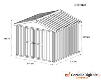* Dimensioni interne: 3.40 m (Larghezza) x 1.70 m (Lunghezza) x 2.10 m (Altezza