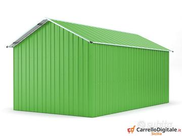 Il box prefabbricato 360 x 762 viene venduto nuovo con garanzia e con fattura o ricevuta fiscale. Viene consegnato all'indirizzo che ci verra' comunicato in kit di montaggio comprensivo di tutta la ferramenta necessaria a montarlo. Box garage casetta prefabbricato in lamiera di Acciaio Zincata grecata con Saracinesca NUOVO, perfetto per il giardino usato come capanno per ricovero rimessa attrezzi o come riparo per auto moto, baracca da cantiere o box attrezzi SPEDIZIONE IN TUTTA ITALIA INCLUSA NEL PREZZO * Dimensioni esterne (incluso tetto): 3.60 m (Larghezza) x 7.62 m (Lunghezza) x 3.15 m (Altezza) * Dimensioni esterne (solo perimetro) 3.45 m (Larghezza) x 7.62 m (Lunghezza) * Altezza della parete: 2.37 m * altezza Colmo: 3.15 m * Metri Quadri: 27,43 mq * Rinforzo rigido: 80 mm x 40 mm , spessore 1,5 mm in acciaio zincato tubi telaio scatolato * Dimensioni porta principale anteriore: 2.55 m (Larghezza) x 2.20 m (Altezza) (Saracinesca) * Dimensioni della porta laterale: 0.72 m (Larghezza) x 1.93 m (Altezza) (1 porta) * Peso: 562 kg circa Telefono/Whatsapp: A soli 3169 euro IVA, spedizione ed assicurazione sulla spedizione inclusi nel prezzo. Possibilita' di acquisto con pagamento alla consegna (SOLO CONTANTI no assegni) Attenzione, il metallo utilizzato non e' ferro o alluminio ma acciaio zincato. Il box in acciao in questione non e' coibentato (pannelli sandwich) ma puo' essere modificato facilmente e con una spesa minima. La casetta da esterno e' composta da profili e pannelli in acciaio zingato e verniciato in maniera da poter resistere alle intemperie. A differenza di quelli in legno i box in lamiera zincata non necessitano di nessuna manutenzione Telefono/Whatsapp: