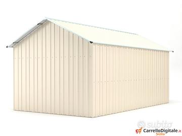 Il box prefabbricato 360 x 762 viene venduto nuovo con garanzia e con fattura o ricevuta fiscale. Viene consegnato all'indirizzo che ci verra' comunicato in kit di montaggio comprensivo di tutta la ferramenta necessaria a montarlo. Box garage casetta prefabbricato in lamiera di Acciaio Zincata grecata con Saracinesca NUOVO, perfetto per il giardino usato come capanno per ricovero rimessa attrezzi o come riparo per auto moto, baracca da cantiere o box attrezzi SPEDIZIONE IN TUTTA ITALIA INCLUSA NEL PREZZO * Dimensioni esterne (incluso tetto): 3.60 m (Larghezza) x 7.62 m (Lunghezza) x 3.15 m (Altezza) * Dimensioni esterne (solo perimetro) 3.45 m (Larghezza) x 7.62 m (Lunghezza) * Altezza della parete: 2.37 m * altezza Colmo: 3.15 m * Metri Quadri: 27,43 mq * Rinforzo rigido: 80 mm x 40 mm , spessore 1,5 mm in acciaio zincato tubi telaio scatolato * Dimensioni porta principale anteriore: 2.55 m (Larghezza) x 2.20 m (Altezza) (Saracinesca) * Dimensioni della porta laterale: 0.72 m (Larghezza) x 1.93 m (Altezza) (1 porta) * Peso: 562 kg circa Telefono/Whatsapp: A soli 3169 euro IVA, spedizione ed assicurazione sulla spedizione inclusi nel prezzo. Possibilita' di acquisto con pagamento alla consegna (SOLO CONTANTI no assegni) Attenzione, il metallo utilizzato non e' ferro o alluminio ma acciaio zincato. Il box in acciao in questione non e' coibentato (pannelli sandwich) ma puo' essere modificato facilmente e con una spesa minima. La casetta da esterno e' composta da profili e pannelli in acciaio zingato e verniciato in maniera da poter resistere alle intemperie. A differenza di quelli in legno i box in lamiera zincata non necessitano di nessuna manutenzione Telefono/Whatsapp: