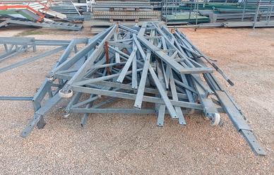 Cod. STR042 Capannone - struttura metallica su ruote 4100x7200 usata In ferro zincato a caldo Si trova già smontato e pronto al carico Si può realizzare in due soluzioni: 1. dimensioni: 7200 x 4120 x H 4100 mm 2. dimensioni: 3600 x 8240 x H 4100 mm Composto da 4 blocchi di dimensioni: 4120 x 1800 x H 4120 mm Può essere realizzato più grande se si creano degli arcarecci Superficie circa 30 m2 Possiamo fornire pannelli, lamiere, policarbonato per tamponarlo e coprirlo Sprovvista di documenti Dimensioni realizzabili: Lunghezza: 7200 mm circa Larghezza: 4120 mm circa Altezza più bassa: 4100 mm circa Altezza più alta al colmo: 4700 mm circa Dimensioni realizzabili: Lunghezza: 3600 mm circa Larghezza: 8240 mm circa Altezza più bassa: 4100 mm circa Altezza più alta al colmo: 4700 mm circa