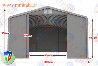 Linea Storage La1Eventi, telaio con campate ogni 1,2 mt. non 1,5 mt. come molti in circolazione, Capannoni Tunnel, per deposito Industriale, per rimessaggio Barche, Yacht,Tensostrutture uso Agricolo ,Strutture in acciaio, con coperture in Pvc per deposito, Fieno, Agricolo , magazzino Agricolo, Magazzino Industriale, Tendostrutture per tutti gli Usi , MM Italia vi propone Modelli con telaio solidissimo in acciao zincato ovale,da 70 x 43 x 1,9 mm. Telo in Pvc IGNIFUGO CERTIFICATO 550 / 650 Gr. Mq. Visitate il sito mmitalia.it in fondo alla pagina sotto il nostro logo entrate nel link Storage : http://www.mm-italia.com/Storage.htm ELENCO MODELLI: altezza Laterale/ in gronda 3,00 Mt. 8,00 x 12,00 x 3,00 mt laterale campate ogni 1,2 mt..telo pvc ignifugo 550 gr. mq. € 3.490,00 i.e. 8,00 x 12,00 x 3,00 mt laterale campate ogni 1,2 mt..telo pvc ignifugo 650 gr. mq. € 4.190,00 i.e. OFFERTA € 3.990,00 i.e. 8,00 x 20,00 x 3,00 mt laterale campate ogni 1,2 mt.. telo pvc ignifugo 650 gr. mq. € 5.900,00 i.e. OFFERTA € 5.490,00 i.e. 8,00 x 20,00 x 3,00 mt laterale campate ogni 1,2 mt.. telo pvc ignifugo 550 gr. mq. € 5.400,00 i.e. OFFERTA € 4.890,00 i.e altezza Laterale in gronda 4,00 Mt. 6,00 x 12,00 x 4,00 mt laterale campate ogni 1,2 mt.. telo pvc ignifugo 550 gr. mq. € 3.400,00 i.e. OFFERTA € 2.890,00 i.e. 6,00 x 12,00 x 4,00 mt laterale campate ogni 1,2 mt.. telo pvc ignifugo 650 gr. mq. € 4.190,00 i.e. 8,00 x 12,00 x 4,00 mt laterale campate ogni 1,2 mt.. telo pvc ignifugo 550 gr. mq. € 3.671,00 i.e. 8,00 x 12,00 x 4,00 mt laterale campate ogni 1,2 mt.. telo pvc ignifugo 650 gr. mq. € 4.490,00 i.e. OFFERTA € 4.100,00 i.e. 8,00 x 20,00 x 4,00 mt laterale campate ogni 1,2 mt.. telo pvc ignifugo 550 gr. mq. € 5.700,00 i.e. OFFERTA € 5.390,00 i.e. 8,00 x 20,00 x 4,00 mt laterale campate ogni 1,2 mt.. telo pvc ignifugo 650 gr. mq. € 6.400,00 i.e. OFFERTA € 5.790,00 i.e. Cel