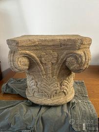 Vendo capitelli decorativo in pietra arenaria ricostruita, ideale come elemento d'arredo sia per interni che per esterni. Il pezzo presenta volute laterali, dettagli floreali scolpiti e motivi fogliati tipici dello stile classico. È solido, pesante e molto stabile, perfetto come: • Base per una statua o un vaso • Tavolino da ingresso o salotto (con l'aggiunta di un piano in vetro che è presente) • Elemento decorativo per giardino, veranda o portico • Arredo scenografico per negozi, studi fotografici, B&B, ristoranti...