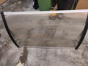 Capottina in policarbonato da esterno,la pensilina è modulabile nel senso che si può unire una o piu capottine,esempio se ne può montanare una singola o arrivare a montarne 5,6,7,8 assieme ecc....... sempre in base alla lunghezza che si vuloe coprire.