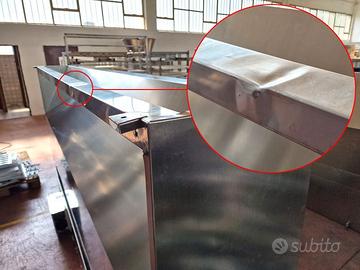 cappa a parete per gastronomia usata, si tratta di un sistema di aspirazione per cucina professionale in acciaio inox con bocchette chiudibili di marca SRCA-P 30X21cm. completa di filtri a labirinto. ha un'ammaccatura sul longarone, vedi foto!