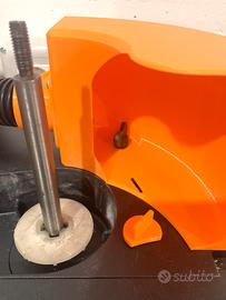 La cappa si fissa al piano tramite la vite che è già in dotazione alla levigatrice ed ad un perno di sicurezza che si infila nella scanalatura per non farla ruorare accidentalmente.