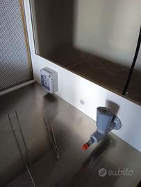 Cappa a flusso laminare ottimo stato (usato ore 14 in tot), esterno in ottime condizioni senza graffi o ammaccature, interno in acciaio, provvisto di presa elettrica e di gas, luce (non UV). Disponibili anche accessori :piano di appoggio, attrezzatura varia e armadio luce per coltivazione in vitro eventualmente da contrattare.