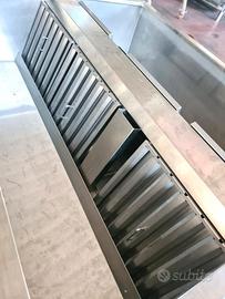 cappa inox completa di tubi usata, si tratta di una cappa da cucina totalmente in acciaio inox completa di filtri, tubi e motore esterno (da provare).