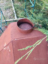 Come da titolo vendo cappa per camino in muratura in lamiera di ferro di 3 mm di spessore, rimossa da camino esistente. In foto le dimensioni. Dotata di orecchie di fissaggio a parete e saracinesca interna per la chiusura della bocca di uscita.