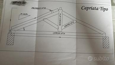 Vendo capriate in legno come da foto larghezza 7,70 ne disponiamo di n* 9 causa errato acquisto svendo a €1200 cadauna