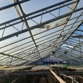 struttura interamente zincata completamente abbullonata (senza alcun punto di saldatura ) , dimensioni 30 x 15 metri , altezza regolabile dai 3/4 metri ai laterali fino ai 6/7 metri colmo centrale superiore. capriate d'altri tempi che possono sorreggere tonnellate . puo essere utilizzata sia come serra o deposito o capannone , può essere chiusa con qualsiasi tipo di materiale (vetro,policarbonato,lamiera grecata, pannelli coibentati) a seconda dell'utilizzo. Al momento è in fase di smontaggio. alla consegna viene spiegato il montaggio .