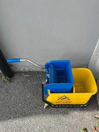 Carellino pulizia con secchio recipiente e dispositivo per strizzare gli stacci. Nuovo mai usato