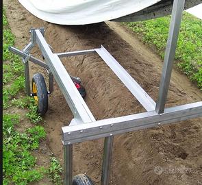 CARELLO AGEVOLATORE per alzare i teli nella raccolta dell'asparago. Struttura in acciaio AISI304 tubolare 80x40mm. Lunghezza 167cm. Larghezza 199cm. Altezza 170cm. Porta cassetta 65x43cm. NON SPEDISCO, RITIRO IN LOCO
