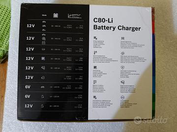 Caricabatterie bosch c80-li originale. Nuovo, mai usato, con scatola originale . Compatibile: 6v / 12v – litio lifepo4 12v – agm/gel/efb/piombo. Corrente fino a 15a (quick fino a 20a). Inclusi: morsetti, occhielli 6mm, staffa/supporto.