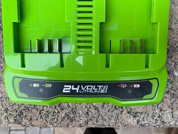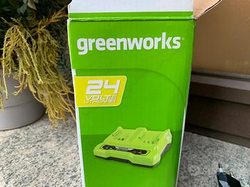 Vendo come da titolo caricabatterie doppio compatibile con tutte le batterie 24V della marca Greenworks, è nuovo mai utilizzato, comprende quello che vedete nella foto, compreso di scatola.
