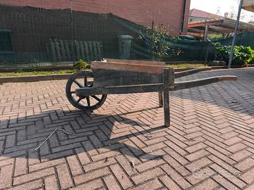 Vendo cariola di legno d'epoca, ottima per esposizione e per un possibile restauro, ruota in ottime condizioni e funzionante.