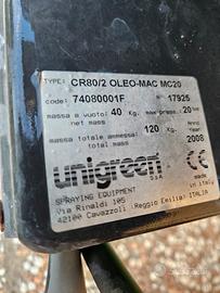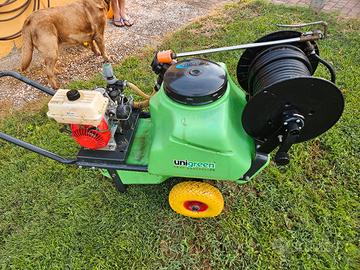 cariola pompa irroratrice, con motore a scoppio. capacità serbatoio 75 lt. alta pressione. completa di tubo (20 mt) e lancia