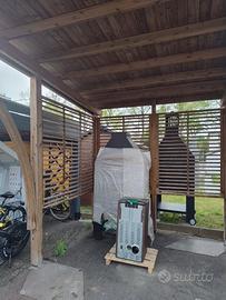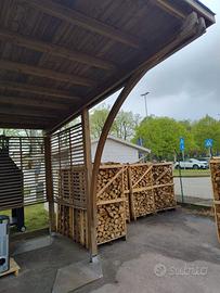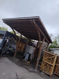 Posto macchina coperto in legno. Misure alla base dei pilastri: 300 x 220 cm Misura copertura: 360 x 480 cm H max: 340 cm H min: 300 cm Misure pilastri: 12 x 12 cm Grigliato su 3 lati. Usata 2 anni. Possibilità di spedizione.