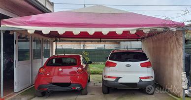 In vendita smontata rispetto la foto carpot auto. Misura lunghezza e larghezza 5,30 m, compresi di tutti i pali per il montaggio della struttura e due teli per copertura laterale.