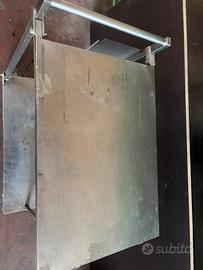 Carrellino in acciaio inox 75x50 cm con 2 ripiani e 4 ruote, di cui 2 girevoli con freno. Struttura robusta, usato ma perfettamente funzionale, ideale per laboratorio, officina, cucina o magazzino.