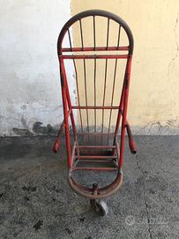 Realizzato con tubolari in ferro elettrosoldati, necessita della sostituzione della ruota posteriore che è nelle condizioni mostrate nell’ultima foto.