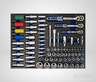 Dentro c’è TUTTO: chiavi complete, bussole, cricchetti, giraviti, set professionali già ordinati.