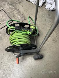 Vendo carrello claber avvolgitubo con tubo e pistola con varie modalità di irrigazione. Euro 30