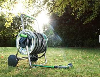 Carrello avvolgitubo per tubida Ø15mm e fino a 60 metri. È dotato di ruote e maniglioni regolabili in altezza per essere spostato comodamente. Facile arrotolare e srotolare il tubo grazie alla sua manovella laterale a movimento libero (destra o sinistra).