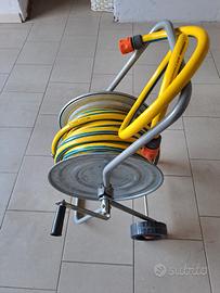 carrello avvolgitubo con tubo lungo 25m, spruzzino e tubo per attacco lavandino o fontana.