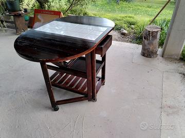 carrello bar il legno con piano in ceramica, ripiani laterali pieghevoli, in ottimo stato