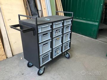 Carrello utile per vari usi. Ferro verniciato compreso di cassetti. Possibilità di aggiungere cestino sul lato