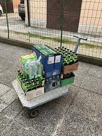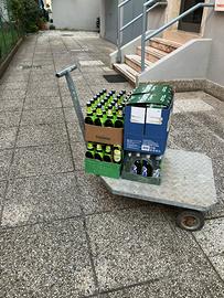 Robusto carrello da trasporto industriale con piattaforma in alluminio mandorlato antiscivolo e struttura in metallo zincato. Ideale per magazzini, cantine, trasporto casse, bevande, materiali pesanti o attrezzature.