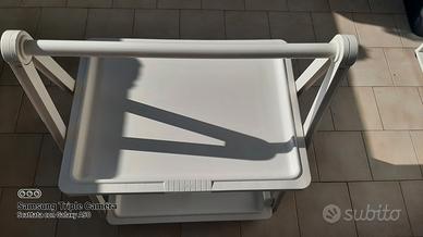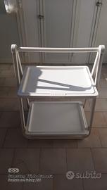 Carrello da giardino retrò vintage, marca APRE, materiale resina bianca, due vassoi dimensione: larghezza cm 58 profondità cm 39, altezza cm 73, spessore piegato cm 6, peso 2 kg.