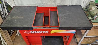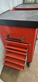 carrello da lavoro con piani di lavoro scorrevoli, contenitori utensili e cassetti scorrevoli per minuterie e varie