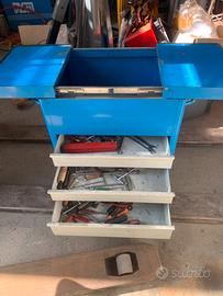 Carrello da officina Fami con vascone superiore e 3 cassetti ad estrazione totale, con sistema di sicurezza per evitare le aperture accidentali euro 200. Carellone su ruote 72x150 h 83 euro 150