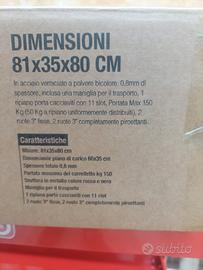 3 ripiani con ruote portata MAX 150 kg 80 x 35 x 85 cm kombo prodotto italiano Nuovo in scatola