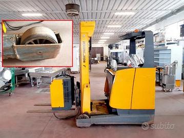 carrello elevatore Jungheinrich usato, si tratta di un muletto elettrico modello ETV 214 del 2001 funzionante, completo di carica batteria. La postazione di guida è di tipo laterale, è composta da volante per la guida e joystick per il controllo delle forche. Le forche possono portare fino a 1400kg. è completo di manuale d'uso.