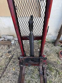 Traspallet manuale che alza fino a 2mt circa, robusto, interamente in ferro verniciato. Si vende perché non lo utilizziamo più.