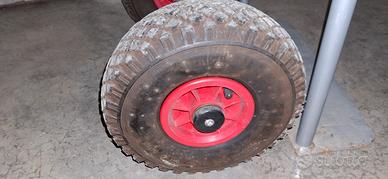 Carrello trasporto portatutto acciaio verniciato, dotato di ruote pneumatiche 26x8,5 cm, peso 6 kg, misura pedana 35,5x18 cm. Adatto al trasporto di scatole, casse e bagagli.