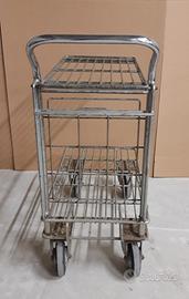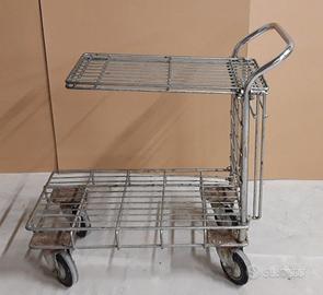 Vendo carrello in filo metallico a 4 ruote girevoli con ripiano alto ripiegabile Lunghezza totale: 100 cm Larghezza totale: 45 cm Dimensioni ripiano inferiore: 85 x 45 cm Dimensioni ripiano superiore: 70 x 37 cm Altezza da terra: 82 cm
