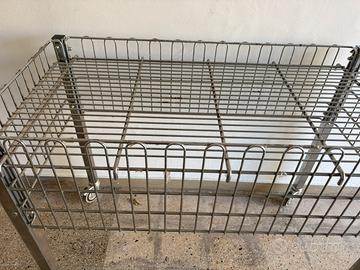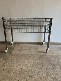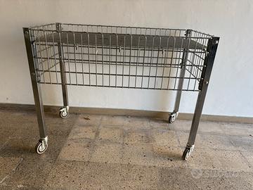 Carrello inox con ruote e piano movibile in modo da adeguarlo alle svariate esigenze. Perfetto per esporre qualsiasi prodotto.