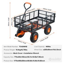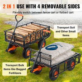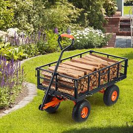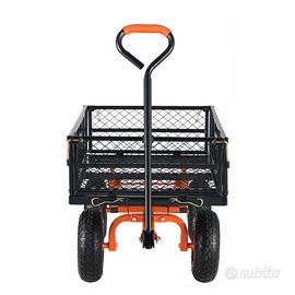 Scarico facile: dotato di un telaio di scarico con maniglia anteriore, gli utenti possono scaricare rapidamente gli oggetti. Basta smontare la parte inferiore del telaio del carrello da giardino. La maniglia regolabile a 180° facilita le manovre senza sforzo, raddoppiando l'efficienza.