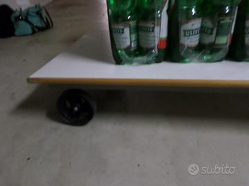 carrello dotato di 4 ruote girevoli a 360 gradi, molto robusto, di costruzione manuale, alto 95 cm, con piano di appoggio di 60 per 95 cm. utilizzabile anche per traslochi perché molto resistente. ottimo stato
