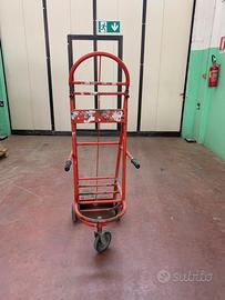 Carrello a tre ruote, due fisse e una sterzante, ad uso professionale per la movimentazione delle cassette.