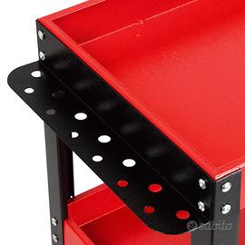 Carrello officina 3 ripiani in acciaio rosso 0.8 mm Tre ripiani • Verniciatura a polvere • Maniglia per semplificare il trasporto • Con parte inferiore dotata di 4 ruote • Maniglia: L30xP6,5cm • Portautensili laterale: L30xP6,5cm • Ripiani: L70xP35cm • Paratia: H5,5cm • Altezza tra ripiani: 24,5cm • Ruote: Ø7cmxL2,5cm Dimensioni: L71.5xP36.5xH73cm Peso netto: 7,7 kg Peso Lordo: 8,5kg