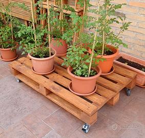 Vendo carrello pallet con ruote (con sistema di bloccaggio), levigato e verniciato con impregnante a base d'acqua color noce. Ritiro nel comune di Lissone Dimensioni 120x80x26