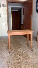 Carrello in legno con ruote piroettanti costruito da un bravo artigiano. È adatto per un ambiente di lavoro (ad esempio per sostenere una macchina da cucire) ma può essere utilizzato anche in altro modo. Misura 80 centimetri x 40 x 65 di altezza.